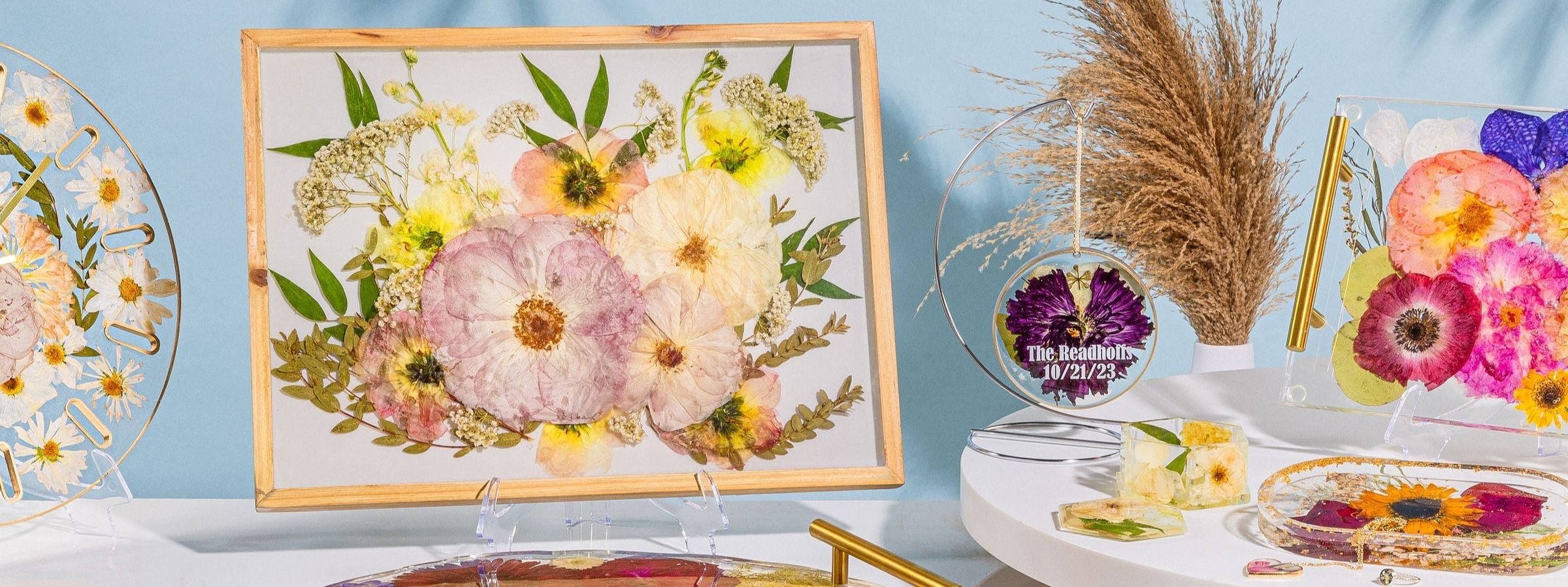From custom bouquet blocks to elegant serving trays, our handcrafted pieces turn your treasured flowers into stunning keepsakes.