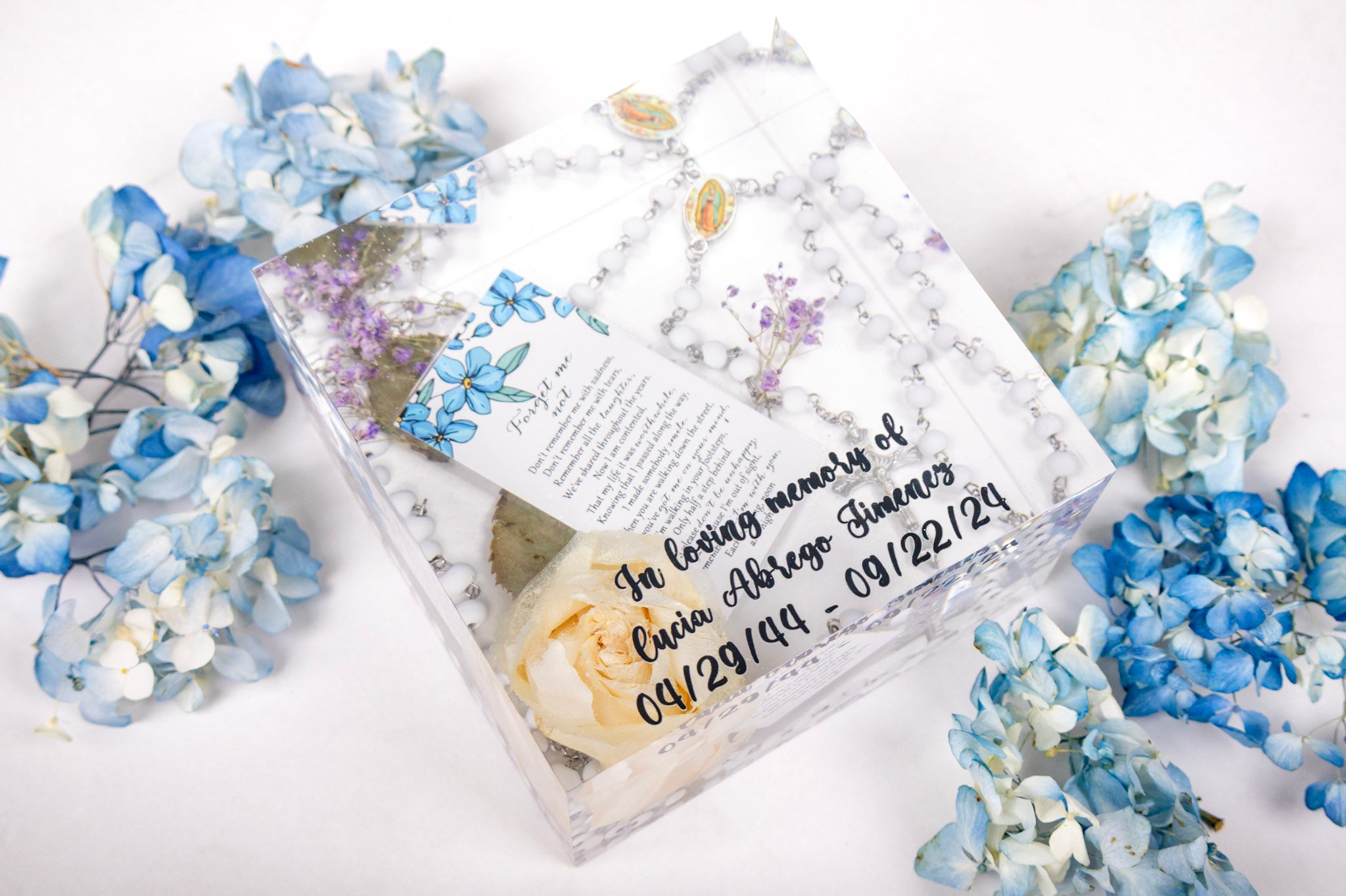 - Inclusions: Incorporate prayer cards, photos, letters, charms, or other mementos.